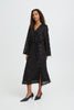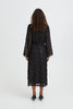 Midi dress with a soft sheer overlay, featuring subtle textured details throughout. Straight fit with V-neckline, long wide sleeves, and adjustable waist tie for definition.