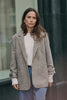 Blazer with tailored straight fit, single-breasted closure and flap pockets. Features structured shoulders, classic notch lapels, and ruched sleeves for a sharp modern look.