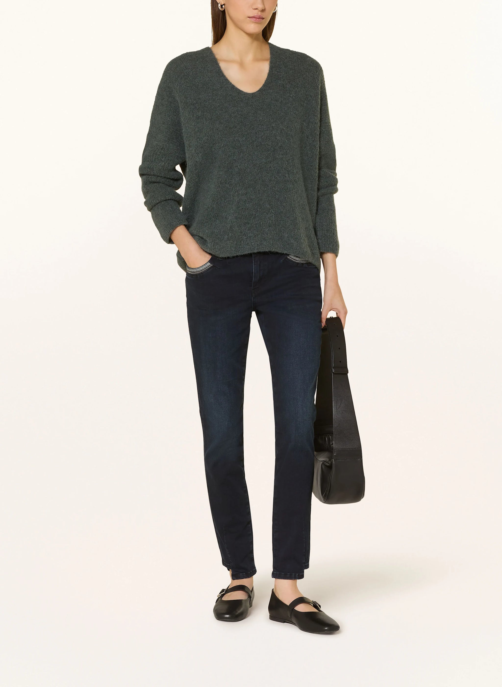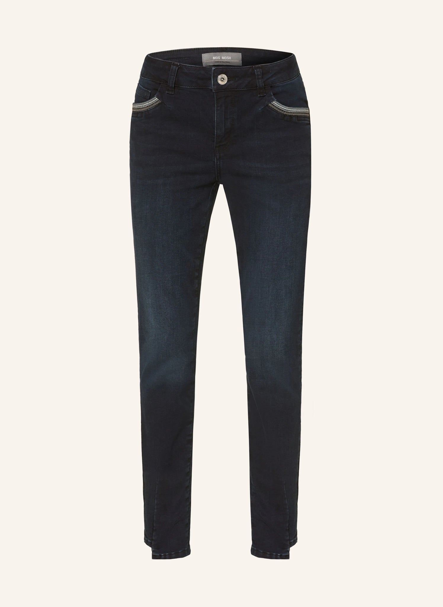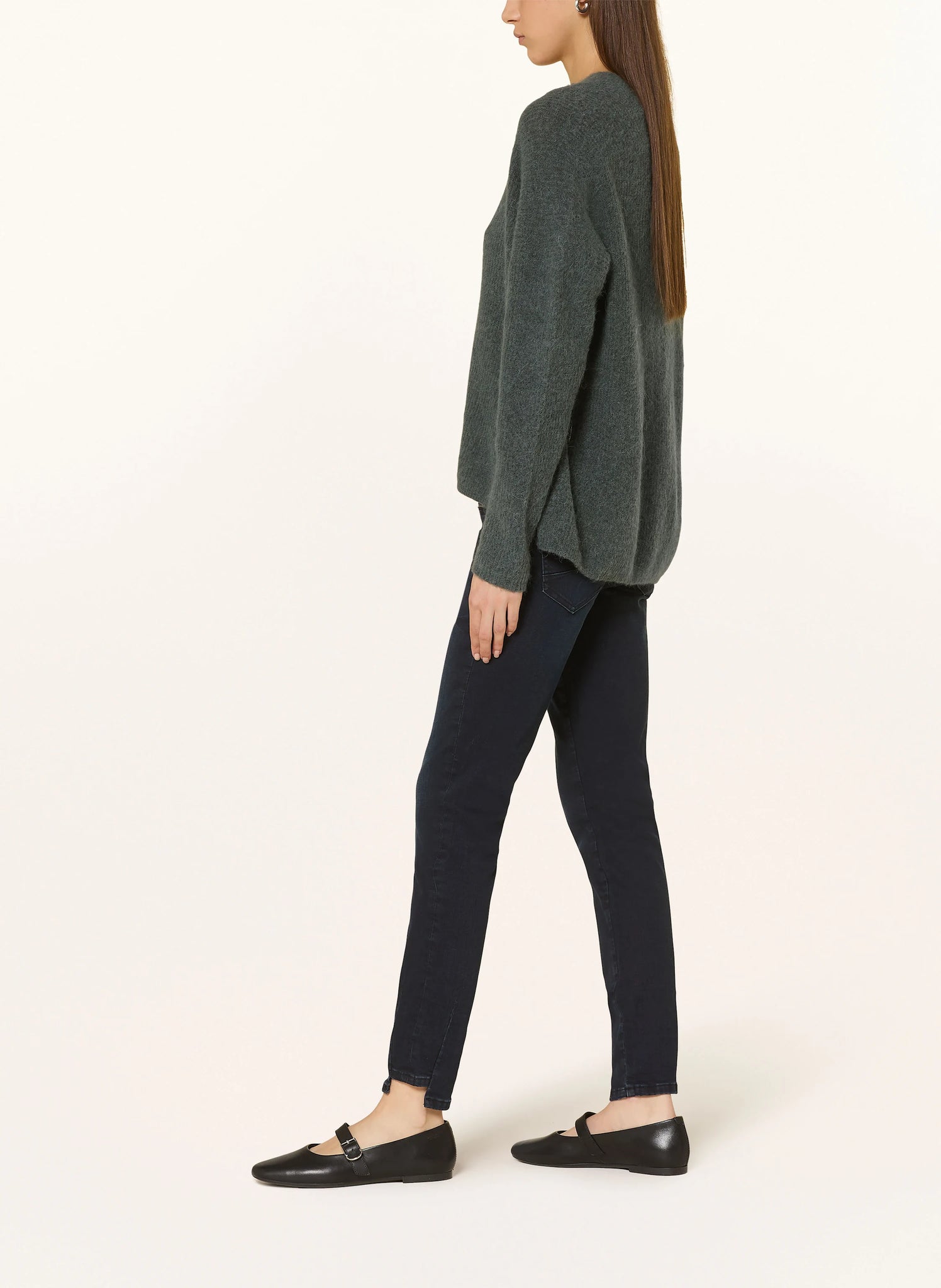 These light blue jeans bring a timeless, versatile appeal with their slim fit and low-rise design for a flattering silhouette. The front features chic stitch detailing on the pockets, while the back includes classic pocket placement and a subtle branded patch on the waistband.