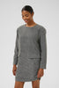 This women's dress features a relaxed fit, straight silhouette, and crew neckline. Long sleeves and front flap pockets enhance versatility and comfort, ideal for business or smart-casual occasions.