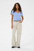 T-shirt with short sleeves, v-neckline and ribbing at the neck. The t-shirt is in a woven jersey quality and has a normal fit.