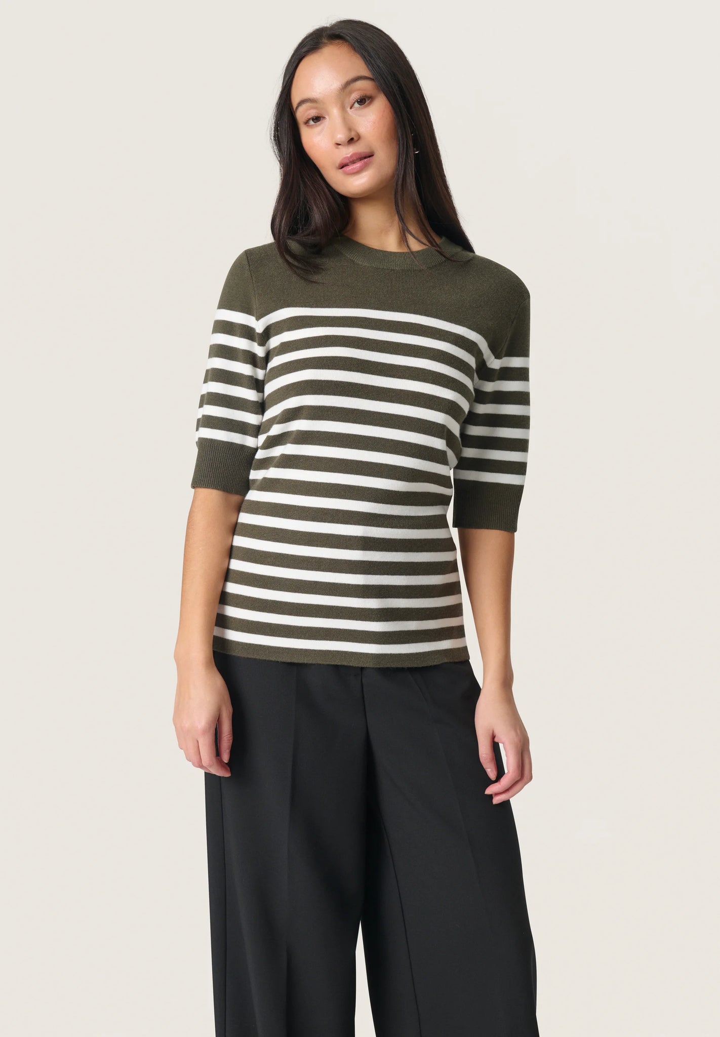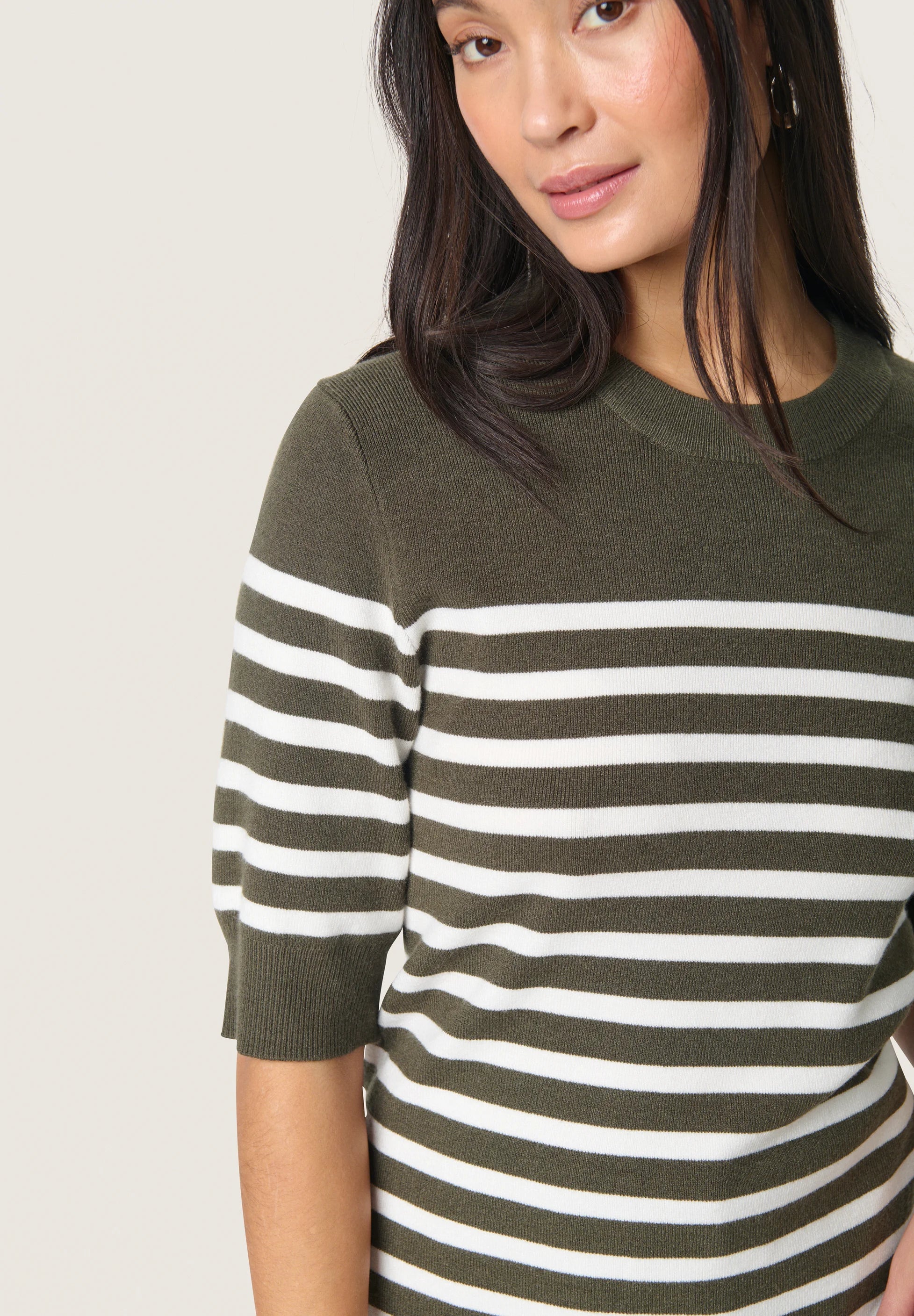 Experience comfort and chic style with the Spina Striped T-Shirt, crafted for versatile wear with a bold stripe design.