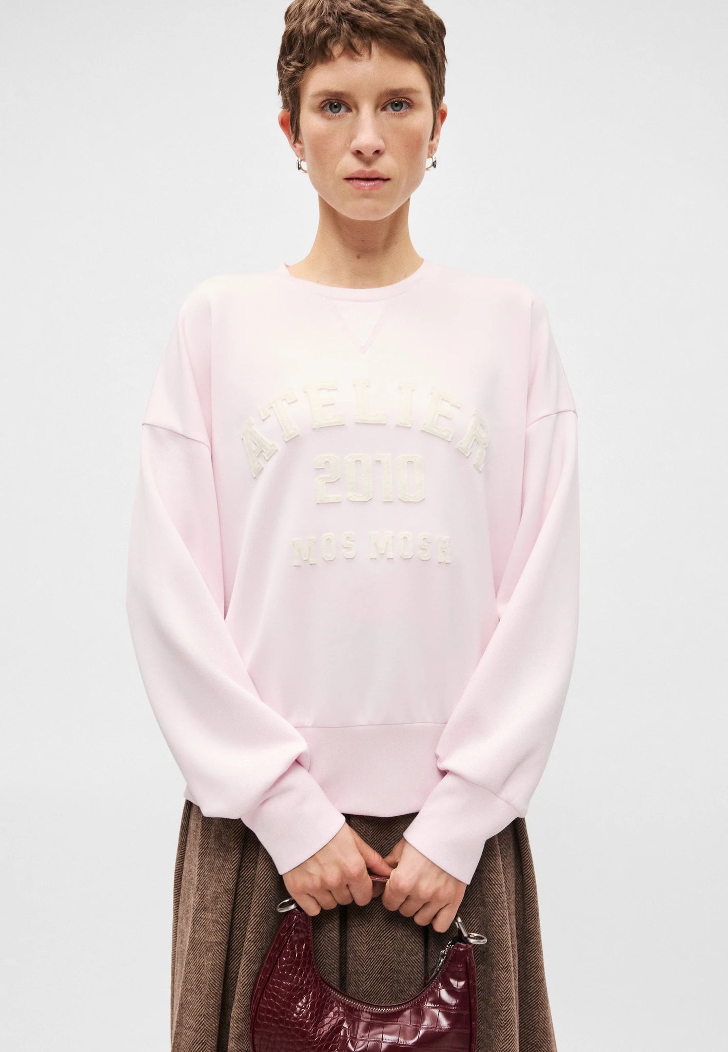 A soft, oversized sweatshirt with a casual yet refined look. Designed with a round neckline, ribbed trims, and a bold front print for a sporty edge. The fabric blend feels smooth and comfortable, making it perfect for laid-back days or styled with tailored pieces for a cool contrast.