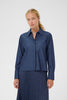 Denim shirt features a straight silhouette, pointed collar, single chest pocket, and concealed button placket. Long sleeves and crisp finish elevate the look.