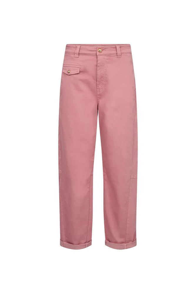 Stylish and easy to wear, these dusty rose ankle trousers featured a flattering straight-leg fit. Made from soft stretch fabric for all-day comfort, they include gold button detailing, belt loops and a secure button and zip fastening. Finished with turn-up hems for a relaxed, modern look, they're perfect for both casual and smart-casual styling.