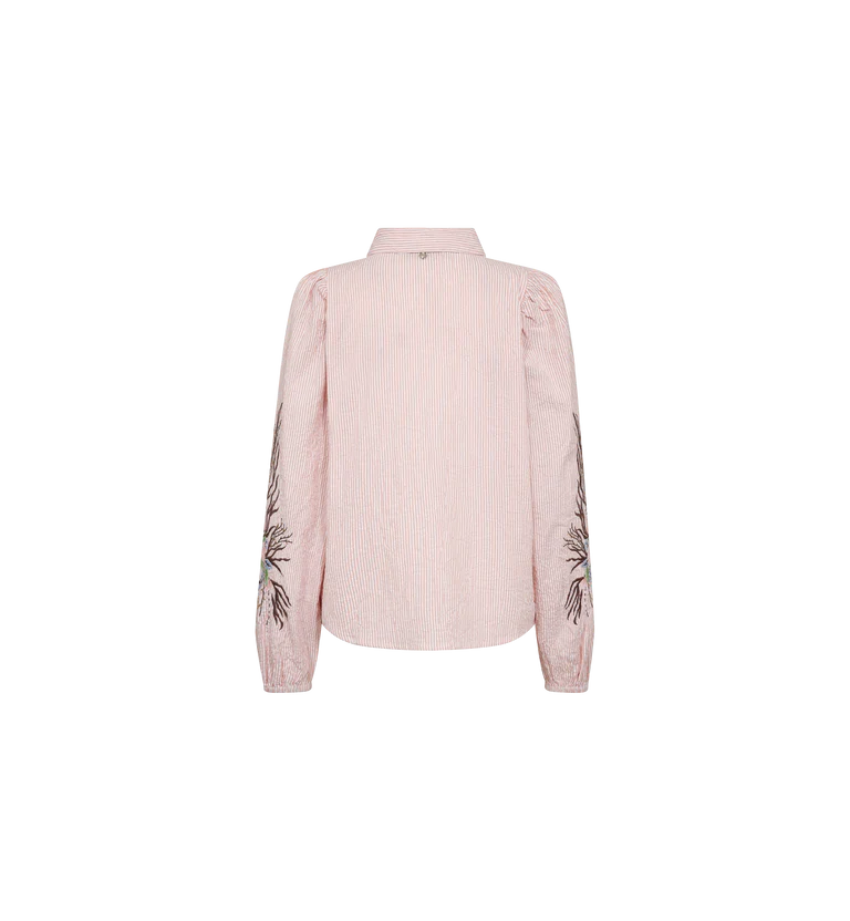A classic cotton shirt with intricate embroidery on the sleeves for a feminine twist. Designed with a timeless silhouette, button front, and soft fabric that offers both structure and ease - perfect for dressing up or down.